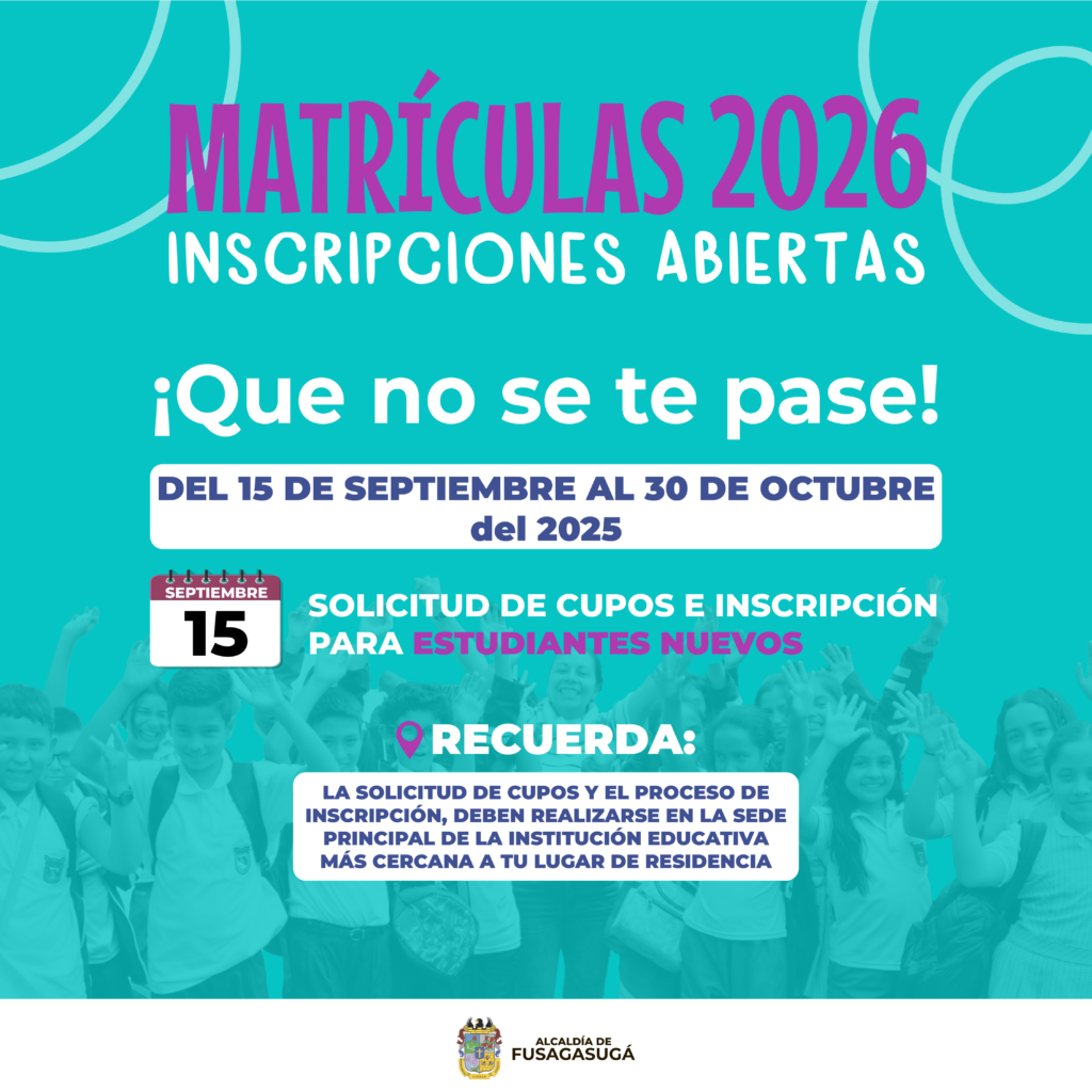ADMINISTRATIVA Y FINANCIERA CALIDAD EDUCATIVA COBERTURA educativa Planeación Educativa Comunicados y Boletines Entérate de las últimas novedades Fusagasugá: Un paso adelante hacia la transformación digital y la paz en línea Ver Boletín Oferta educativa para población Sorda ÚLTIMAS NOVEDADES ¡Entérese de las últimas novedades! EDUCACIÓN Paso a paso - Inscripción transición CALENDARIO DE MATRÍCULAS 2026